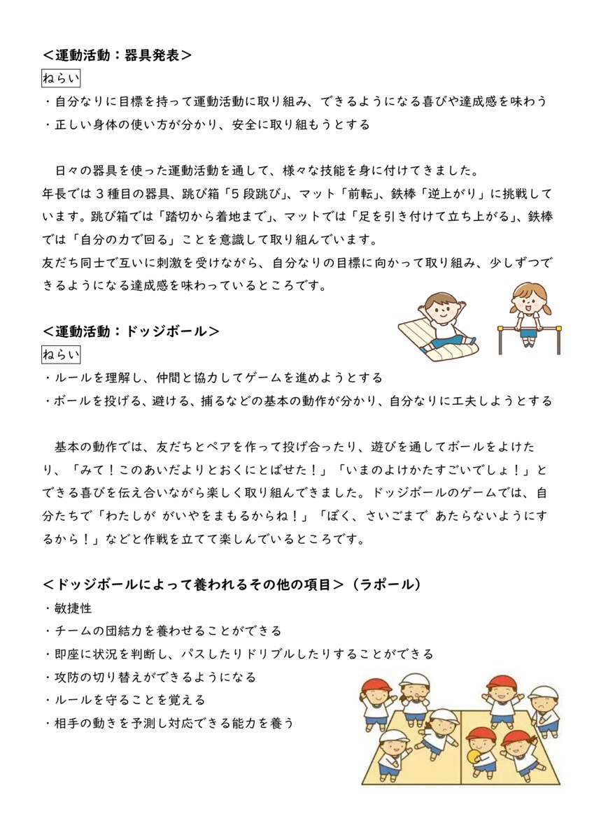 R7 杉並台保育園 運動活動ポータル 2026.03.242026.03.25 Suginamidai nursery school 2026/03Exercise-Activities ~ドッジボール大会~ ~器具発表~ Daiichi-GakuenSuginamidai nursery school Contact Us 〒861-1112熊本県合志市幾久富1656-485 TEL 096-274-2727 杉並台保育園ホームぺージタップすると別ウィンドウで開きます